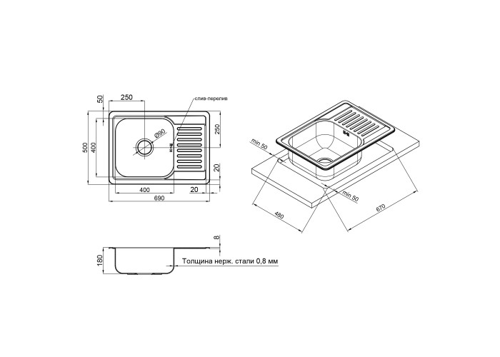 Кухонна мийка Lidz 6950 0,8 мм Micro Decor (LIDZ6350MDEC) виготовлена з нержавіючої сталі харчової марки, тому виріб прослужить довгі роки. Варто відзначити впізнаваний дизайн який прикрасить будь-яку кухню. Відмінна якість і дизайн мийки дозволять задовольнити найвищі вимоги! Мийка виконана з робочою чашею і ребристим крилом для сушіння посуду і розморожування продуктів. Монтується урізним способом в отвір в стільниці. Поверхня мийки матова.