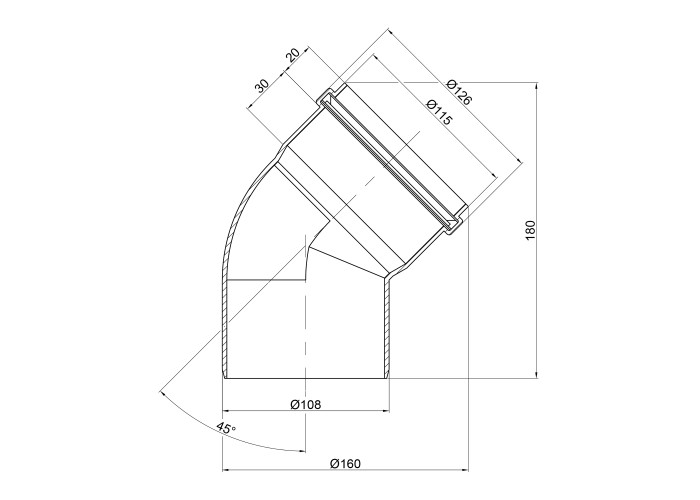Коліно ПВХ каналізаційне TA Sewage110, 67°