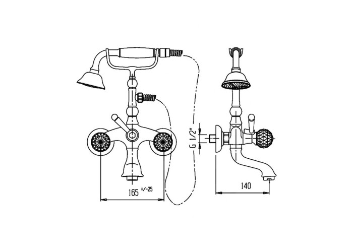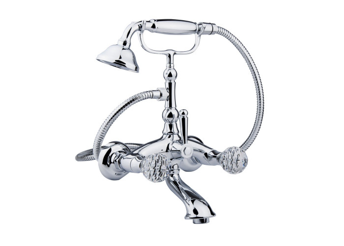 Змішувач для ванни Bianchi Boheme VSCBOM102300CRM виготовлений з міцної якісної латуні, стійкої до корозії. Завдяки рівномірному хромованому покриттю, яке забезпечує захист від механічних пошкоджень і полегшує догляд за виробом, експлуатаційний період значно збільшується. Виріб має істотну деталь: вентилі виготовлені з каменів Swarovski. Також змішувач обладнаний душовим гарнітуром зі зручною лійкою та вбудованим стильним тримачем.