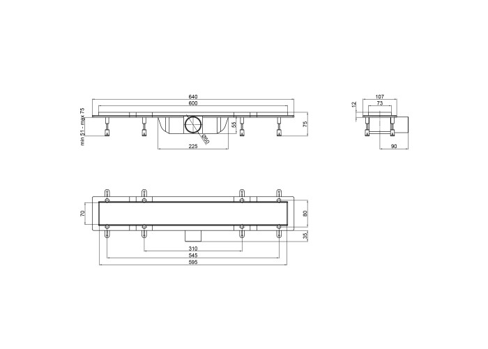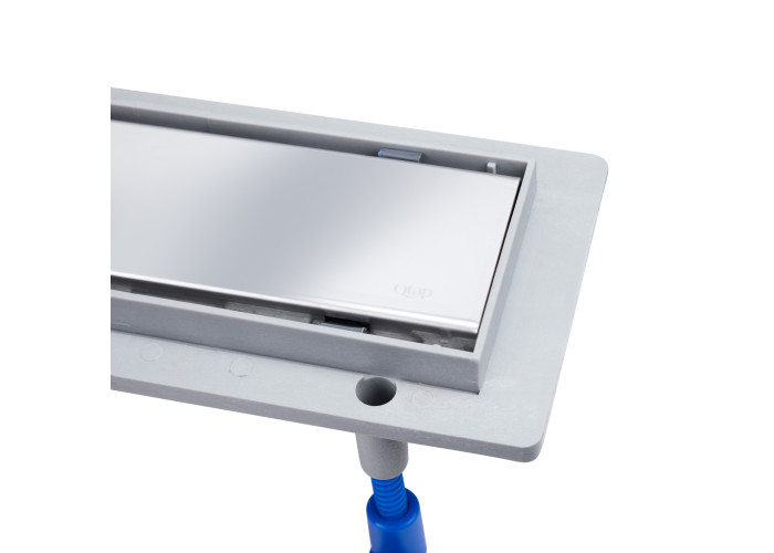 Лінійний трап Qtap Dry Tile304-600 допоможе облаштувати сучасну душову зону без застосування душового піддону, на рівні з підлогою. Корпус трапа виконано з якісного пластику сірого кольору. Дана модель виконана з декоративною накладкою 600х73 мм і випускним отвором діаметром 50 мм, яка виготовлена з нержавіючої сталі і за необхідності перетворюється у лоток під укладення керамічної плитки. Завдяки сухому закриву неприємний запах не буде проникати в приміщення з каналізації.