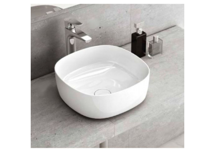 Накладная раковина-чаша, Soft, без отверстия под смеситель, без перелива, цвет белый, 370x370х140 мм. С крышкой донного клапана.