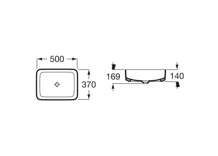INSPIRA умывальник 500*370, квадратная, накладная, без отверстия под смеситель, без перелива