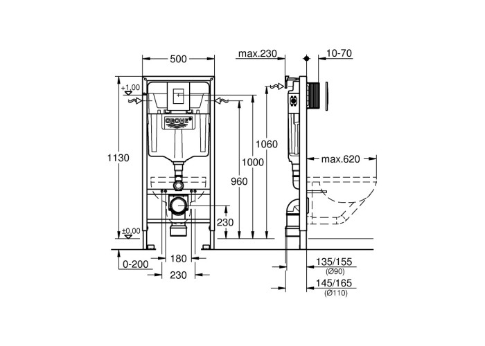 GROHE EasyConnect ─ удобное подключение смывной панели и спускного клапана. GROHE EcoJoy ─ водосберегающая технология. GROHE QuickFix ─ удобный монтаж. GROHE Safety ─ безопасность стальных рам в инсталляционных системах. GROHE SpareFlush ─ дополнительный объем смыва. GROHE ToolFree ─ простое подключение. GROHE VarioPort ─ подсоединение шланга к водоснабжению в четырех точках. GROHE Whisper ─ тихая работа изделий.