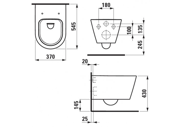 Унитаз подвесной, глубина 545 мм, округлой формы, горизонтальный излив