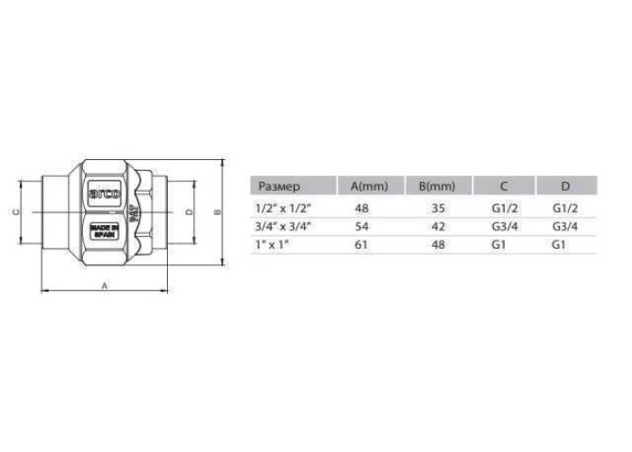 Технічні характеристики Клапан зворотного ходу 1/2 "ARCO (RET01) made in Spain