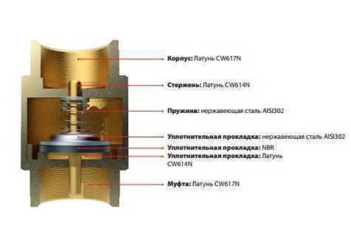 Корпус изделий изготовлен с высокопрочной латуни методом горячей ковки, материалом служит специальная латунь марки CW617N, устойчивая к высокому давлению и от воздействия всевозможных агрессивных компонентов при создании трубопроводов.