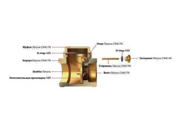 Корпус виробів виготовлений з високоміцної латуні методом гарячого кування, матеріалом служить спеціальна латунь марки CW617N, стійка до високого тиску і від впливу всіляких агресивних компонентів при створенні трубопроводів.