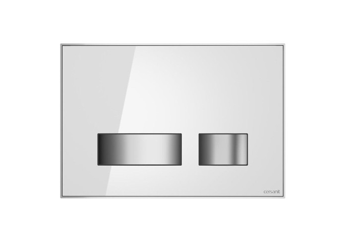 Кнопка MOVI предназначена для скрытого монтажа, что придает элегантность минималистским интерьерам. Модель выполнена из белого стекла, что хорошо контрастирует с керамикой, используемой в ванной комнате. Стеклянная плитка окружена нежной хромированной блестящей рамой, которая эффективно подчеркивает ее форму.