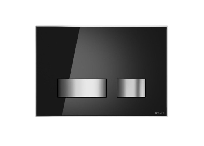 Кнопка MOVI призначена для прихованого монтажу, що надає елегантність мінімалістичним інтерєрам. Модель виконана з чорного скла, що чудово контрастує з керамікою, яка використовується в ванній кімнаті. Скляна плитка обрамлена елегантною хромованою блискучою рамкою, яка ефективно підкреслює ії форму.