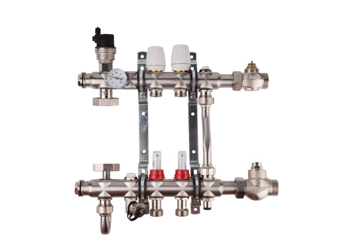Колекторна група SD Forte 1" 5 виходів виготовлена з високоякісної нержавіючої сталі, розроблена і виконана в якості комплектного розподільного пристрою і забезпечує різні переваги: швидкий монтаж на стіні або в шафу, різні можливості підключення (справа, зліва), антикорозійний захист, зручний доступ до всіх основних елементів.