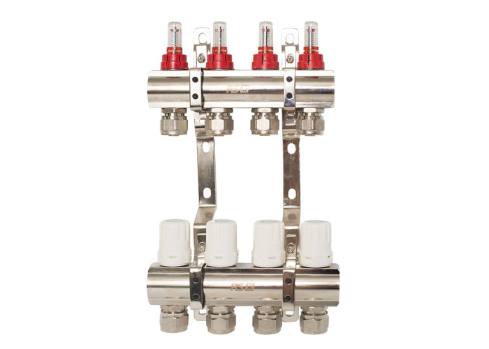 Коллекторная группа со встроенными расходомерами бренда RSk (Италия) со стойким никелевым глянцевым покрытием. Количество выходов: от 2 до 12 . Диаметр выходов 1" х 16. Материал: латунь CW617N, покрытие - никель. Крепления в комплекте. Упаковка в картон. Коллекторная группа RSk (Италия) с расходомерами используется в системах отопления и горячего водоснабжения, позволяя создать и обеспечить надежную стабильную работу системы теплого пола. Она дает возможность значительно упростить систему, исключив из нее дополнительную арматуру. Расходомеры позволяют снизить температуру пола в отдельных помещениях, где, например, на данный момент никто не живет. В целом коллекторная группа в сборе RSk предназначена для выполнения своей главной функции – обеспечения равномерного давления и поступления воды для всех приборов и контуров в системе. Комплект поставки коллекторной группы для теплого пола включает подающий коллектор с расходомерами, обратный коллектор и крепежи.