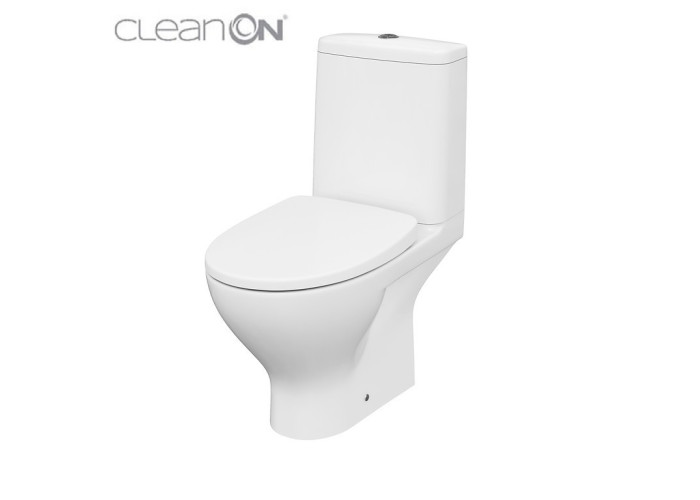 Компактный округлый унитаз MODUO CLEAN ON оснащен экономичной системой смыва 3/5 л, которая позволяет контролировать степень потребления воды. Компакт имеет горизонтальный выпуск воды и нижний подвод воды к бачку. В комплект также входит антибактериальное сиденье из дюропласта .
