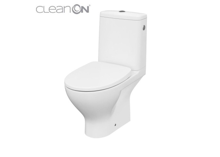 Компактний округлий унітаз MODUO CLEAN ON 011 обладнаний економною системою змиву 3/5 л, яка дозволяє контролювати ступінь споживання води. Компакт має горизонтальний відтік і вхід води з низу бака. У набір також входить антибактеріальна кришка з дюропласту SLIM WRAP.