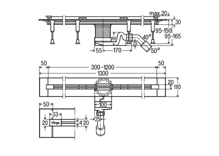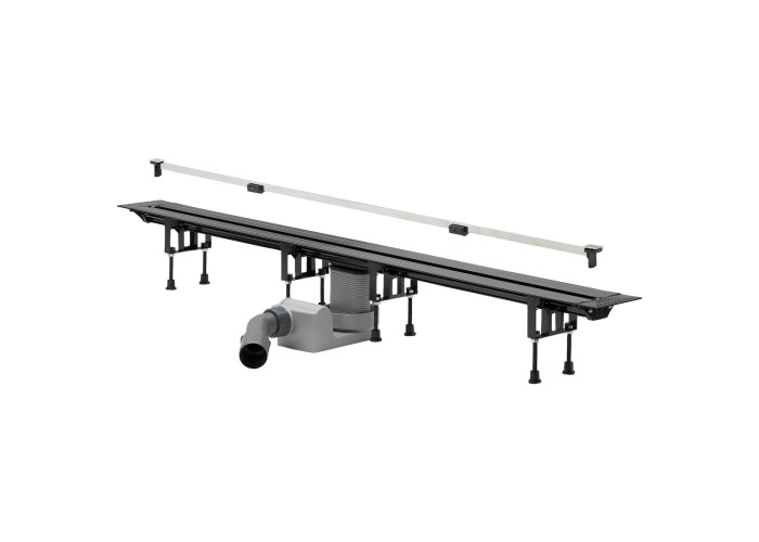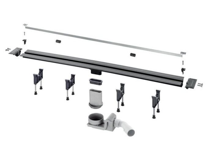 Комплект: лоток Advantix Vario, дизайн-вставка Visign SR2 глянцевая; для монтажа с использованием обмазочной гидроизоляции (душевые поддоны в строительном исполнении), герметизация примыкающих поверхностей лотка к строительным конструкциям осуществляется при помощи герметика и гидроизоляционного полотна; высококачественный пластик, комплектация: монтажные опоры, концевые заглушки, самоочищающаяся конструкция сифона, регулируемое по высоте крепление для дизайн-вставки, компенсатор высоты, фронтальная поверхность для нанесения/закрепления гидроизоляции, набор уплотнений, шаблон для обрезания