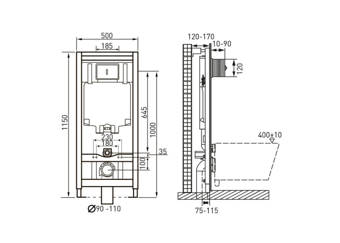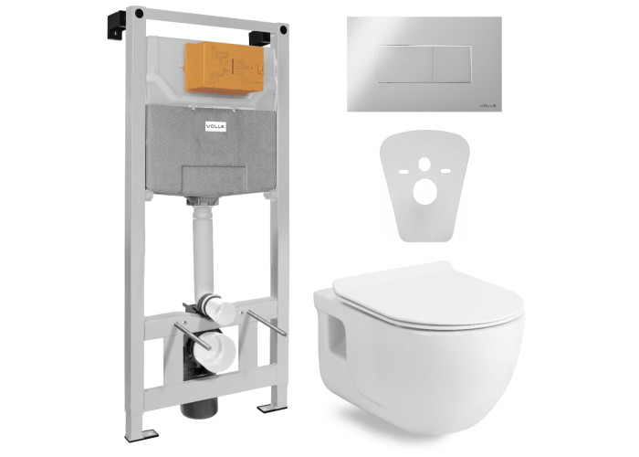 Комплект: ALTEA унитаз 53*35,5*40см подвесной Rimless с сидением+ VOLLE MASTER NEO инсталляция для подвесного унитаза с клавишей смыва, хром