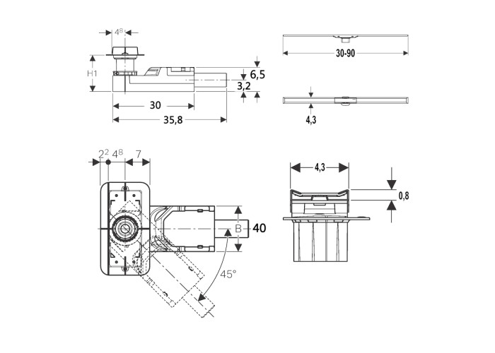 Корпус дренажного канала CleanLine для конструкции пола высотой от 65 мм, L30 см.