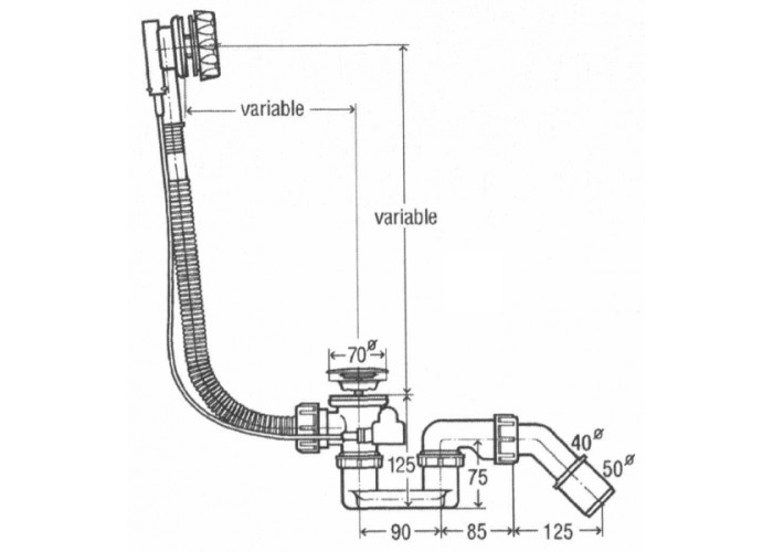 MALIBU ванна 170*75*40 см с ручками (чугун) + сифон Viega Simplex для ванны автомат 560мм (285357)
