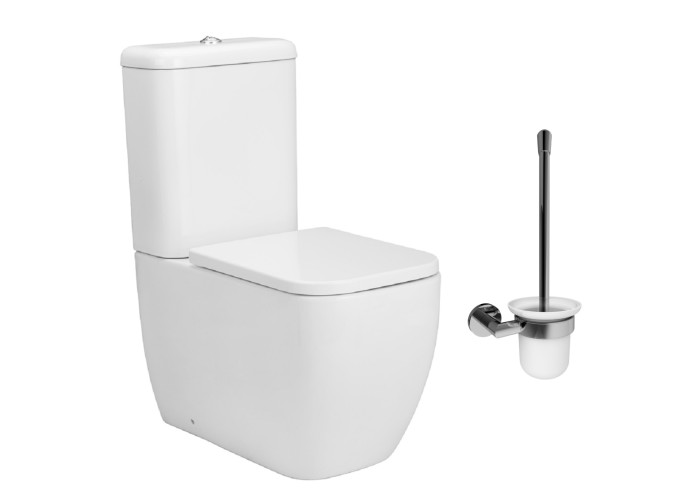 Унитаз устанавливается вплотную к стене, скрывая канализационную трубу. Смывной бачок 3/6л с нижним подводом воды оснащён качественным сливным механизмом Geberit. Тонкое быстросъёмное сиденье унитаза из антибактериального пластика Duroplast с функцией плавного опускания. В комплект входят крепления к полу.