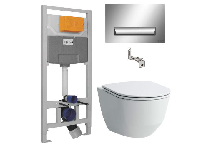 Комплект: PRO Rimless унитаз подвесной, в комплекте с сиденьем Slim + IMPRESE комплект инсталляции 3в1