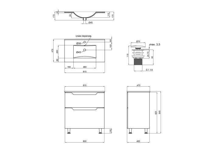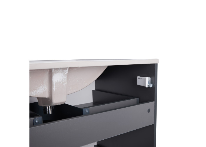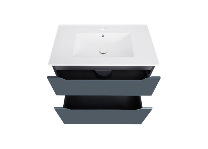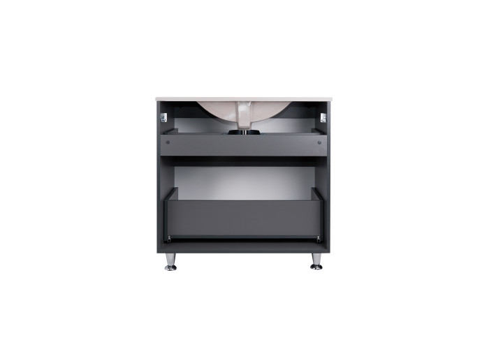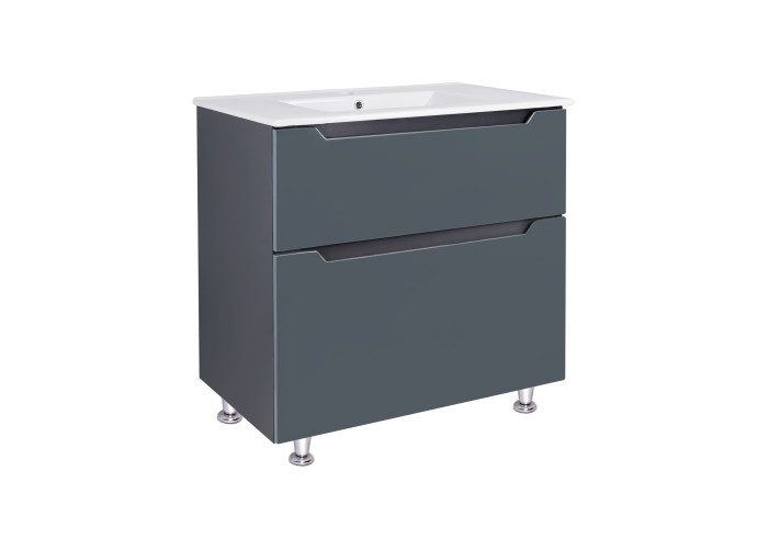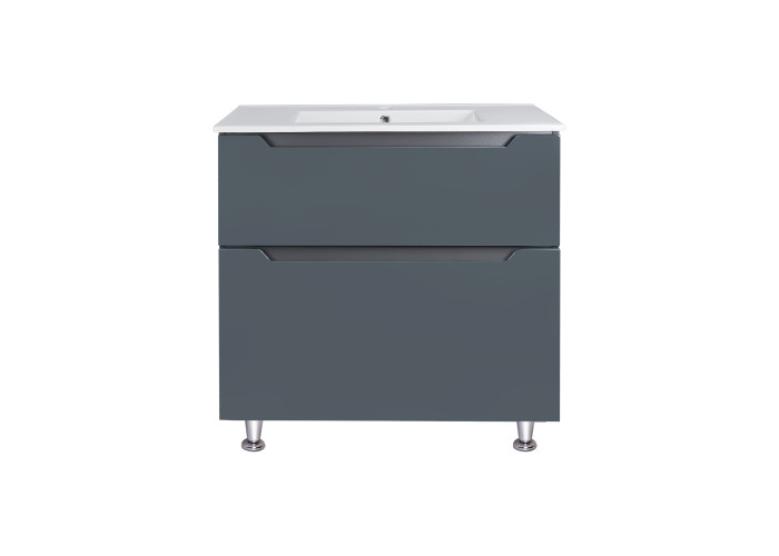 Комплект Qtap Scorpio 810х825х460 Graphite тумба підлогова + раковина урізна QT1471TNВ8023080CG виконана в лаконічному стилі, який доповнить дизайн будь-якої ванної кімнати. Раковина виготовлена з якісної кераміки білого кольору, вона виконана з отвором під сифон і переливом. Корпус виробу сірого кольору виготовлений з ЛДСП, фасадна частина з МДФ з глянцевим покриттям. Тумба обладнана двома зручними висувними ящиками з механізмом доведення. У комплектацію входять чотири металеві ніжки.