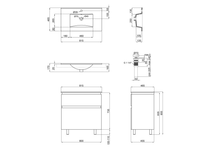 Тумба, раковина, донний клапан, дюбель розпірний з L-подібним крюком, ніжки.