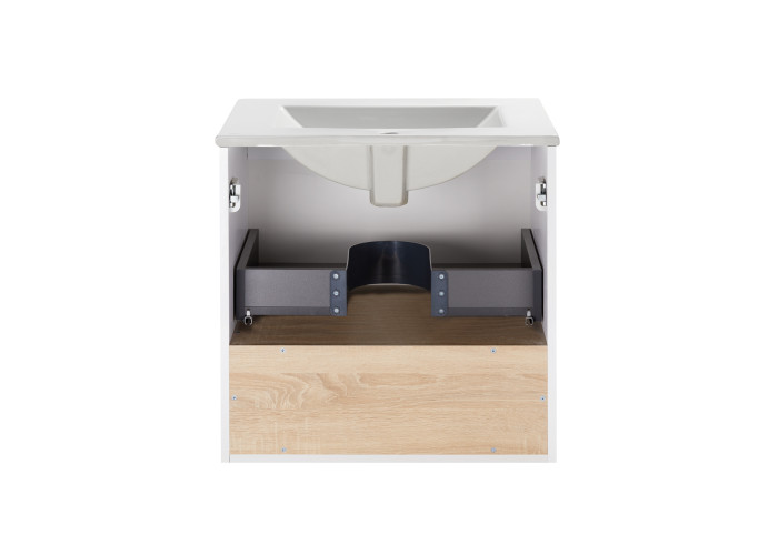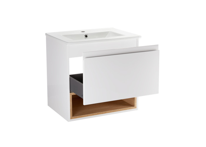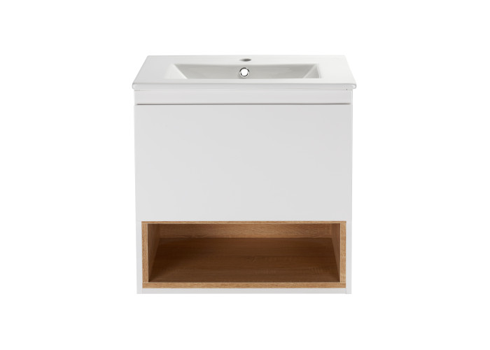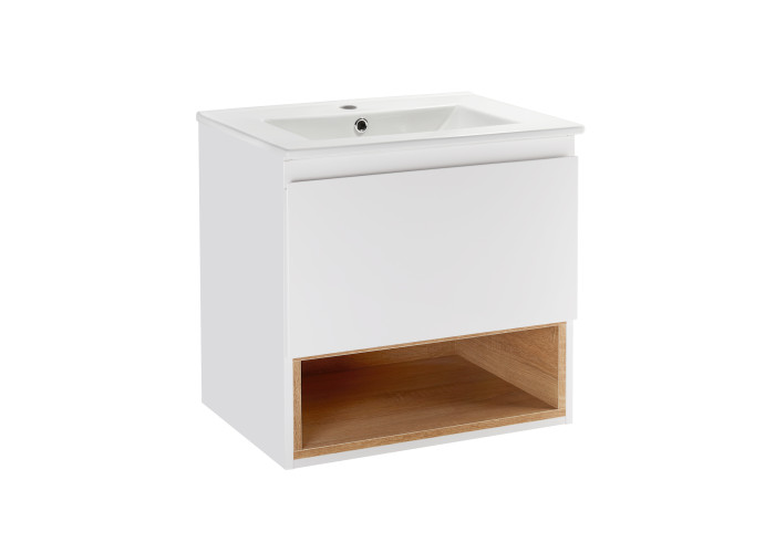 Комплект Qtap Robin 600х580х437 White/Whitish oak тумба подвесная + раковина врезная QT1372TPВ6001WWO