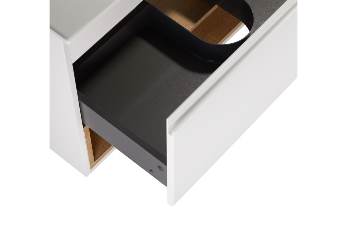 Подвесная тумба с раковиной Qtap Robin QT1372TPВ6001WWO выполнена в лаконичном стиле, который дополнит дизайн любой ванной комнаты. Раковина изготовлена из качественной керамики белого цвета, она имеет отверстие под сифон и перелив. Корпус тумбы белого цвета изготовлен из ЛДСП, фасадная часть из МДФ с глянцевым покрытием. Изделие оснащено удобным и вместительным выдвижным ящиком с механизмом доводчика, а так же стильной полкой цвета белого дуба.