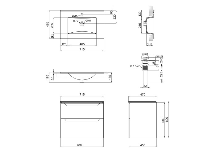 Тумба, раковина, донный клапан, дюбель распорный с L-образным крюком.