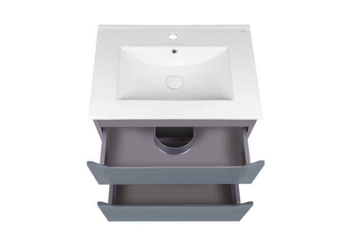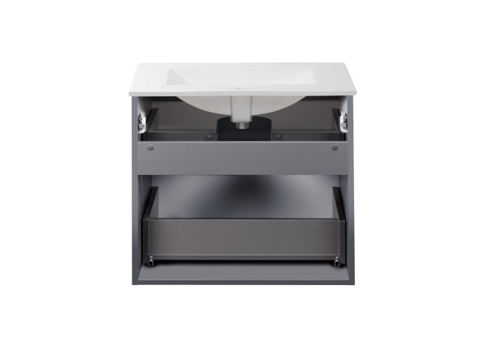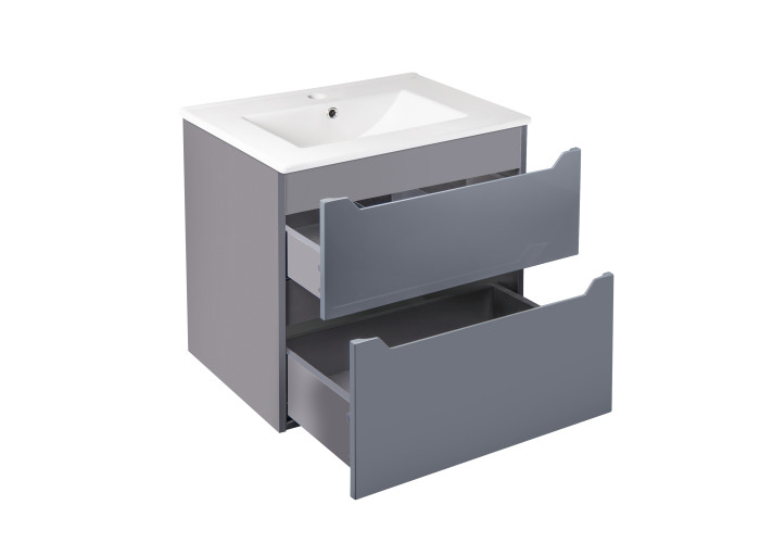 Тумба подвесная с раковиной Qtap Scorpio QT1472TPВ7023070CG выполнена в лаконичном стиле, который дополнит дизайн любой ванной комнаты. Раковина изготовлена из качественной керамики белого цвета, она выполнена с отверстием под сифон и переливом. Корпус тумбы серого цвета изготовлен из ЛДСП, фасадная часть из МДФ с глянцевым покрытием. Оснащена двумя выдвижными ящиками с механизмом доводчика.