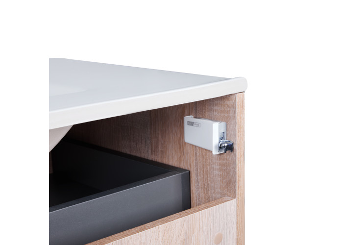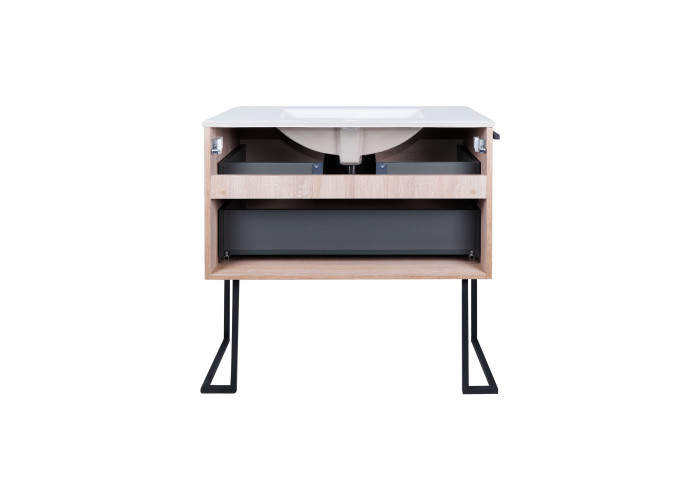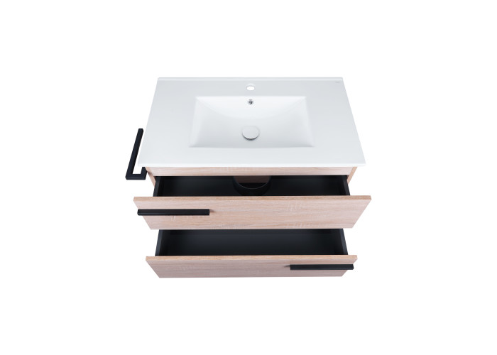 Комплект Qtap Taurus 800х800х437 Whitish oak тумба для підлоги + раковина урізна QT2471TNT803WO виконано у лаконічному стилі, що доповнить дизайн будь-якої ванної кімнати. Раковина виготовлена з якісної кераміки білого кольору, вона має отвір під сифон і перелив. Корпус і фасадна частина тумби кольору білого дуба виготовлені з ЛДСП. Виріб оснащено зручними і місткими висувними ящиками з механізмом доводчика. Тумба має додаткове настінне кріплення для більшої стійкості.