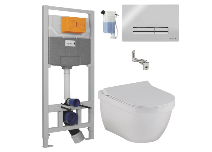 Комплект: SOLAR Rimless унитаз подвесной, сиденье Slim slow-closе + IMPRESE комплект инсталляции 3в1 (OLIpure), клавиша PANI хром