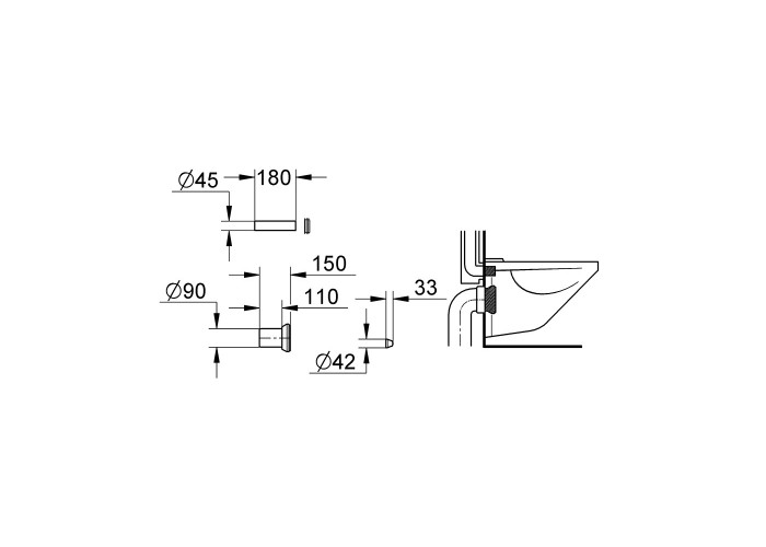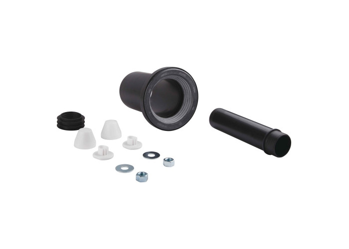 Комплект впускного и смывного гарнитура для подвесного унитаза Grohe 37311K00 состоит из соединительной трубки диаметром 45 мм и длиной 200 мм, а так же сливной манжеты диаметром 110 мм и длиной 150 мм. Заглушки для болтов-держателей унитаза в комплекте.