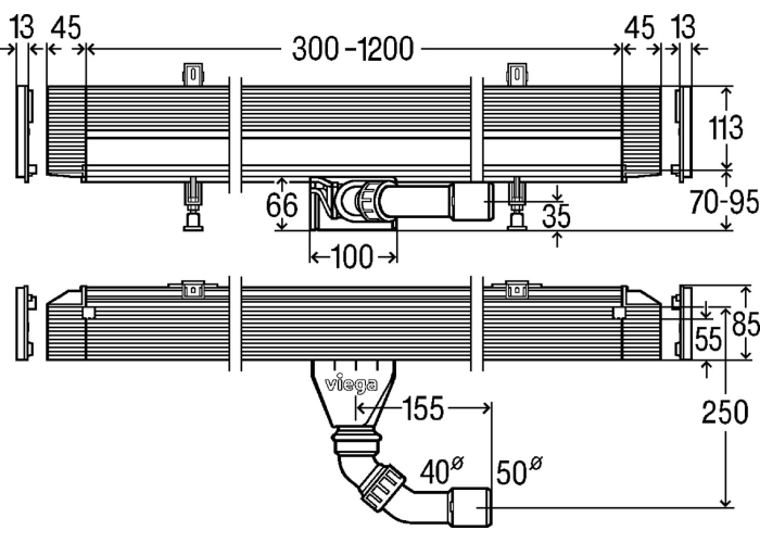 Душевой лоток Advantix Vario может быть установлен в трех различных вариантах. Например, как прямолинейный элемент в произвольном месте помещения или не-посредственно у стены. Дополнительно возможно его угловое исполнение или П-образная форма по периметру всей душевой зоны. По высоте душевой лоток также имеет большой диапазон регулировок. Он может быть установлен высотой от 90 до 165 мм, причем даже при минимальной монтажной высоте перепад высот между сливным патрубком и основой составляет 25 мм. При соблюдении минимального уклона возможна прокладка соединительных трубопроводов длиной 2,5 м без необ-ходимости подъема душевого лотка. Пропускная способность в зависимости от монтажной высоты конструкции составляет от 0,4 до 0,8 л/с и может быть удвоена путем соединения двух душевых лотков.