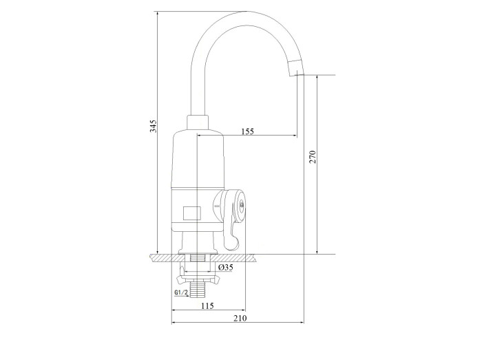Кран для кухни проточный GF (WCR)E-40-115 изготовлен из нержавеющей стали. Предназначен для быстрого нагрева проточной воды для бытовых целей. Подключается к магистрали холодного водоснабжения с помощью гибкого шланга диаметром 1/2" с давлением от 0.04 до 0.5 МПа и бытовой электрической сети 220 В, 50 Гц.
