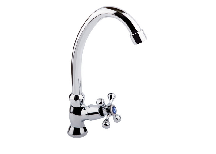 Кран на одну воду для кухни SW Delta 269 изготовлен из силумина. Благодаря глянцевой хромированной поверхности имеет оригинальный внешний вид. Выполнен в классическом стиле, с вентильной ручкой для регулировки напора холодной воды.