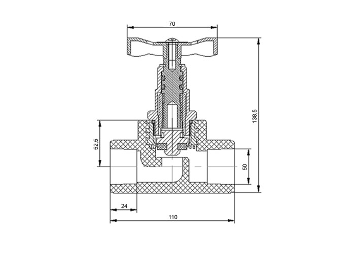 Кран PPR Blue Ocean вентильний 50 виробляють з поліпропілену й латуні. Металева вставка покрита нікелем. Вентиль розрахований на номінальний тиск 25 бар. Експлуатаційні вимоги до температури робочого середовища — не вище 90 °C. Для приєднання запірно-регулювального виробу до трубопроводу потрібен спеціальний паяльник для виконання поліфузного зварювання. Розмір підключення — 50 мм (діаметр). Кран виготовлений з використанням передових технологій в умовах сучасно обладнаного заводу.