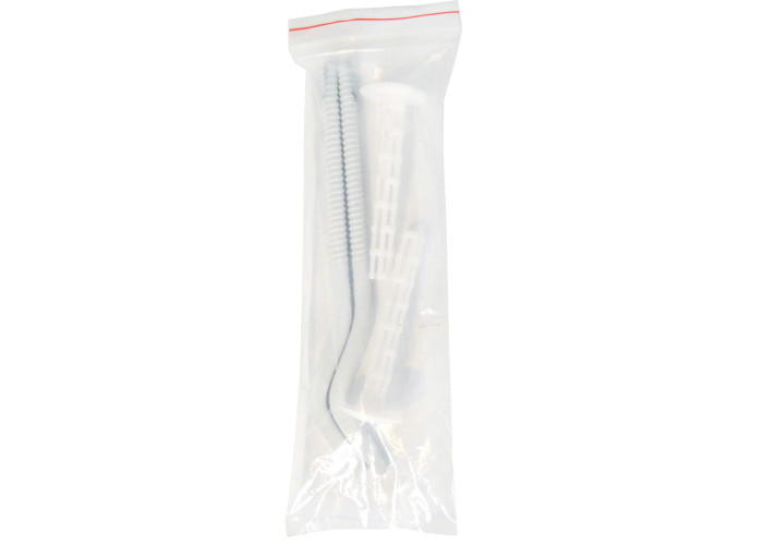 Кронштейн радіаторний анкерний білий. Кріплення призначене для настінного навішування алюмінієвих і біметалічних радіаторів. Матеріал: сталь вуглецева оцинкована, пофарбована епоксидної емаллю. Колір - білий (RAL 9010). Матеріал дюбеля - поліпропілен. Довжина кріплення 170 мм. Поставляються в поліетиленовому пакеті.