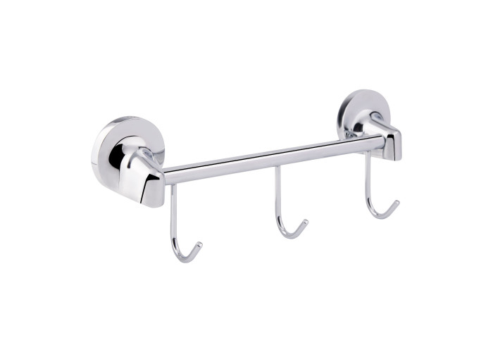 Держатель для полотенец и халатов Cosh (CRM)S-80-910B3 выполнен в виде стержня с тремя фиксированными крючками. Он крепится на стену на удобной высоте с помощью монтажных элементов, которые входят в комплект. Поверхность хромирована, поэтому менее подвержена коррозии и грязи.