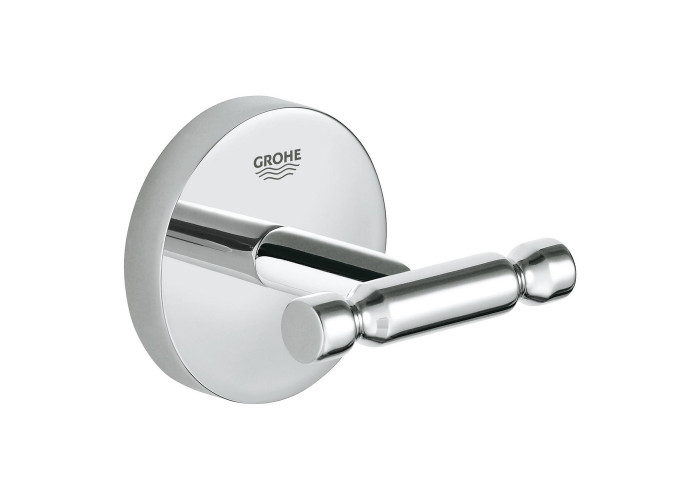 Крючок для банного халата Grohe BauCosmopolitan 40461001 изготовлен из латуни с хромированным покрытием по технологии Grohe StarLight, что предотвращает появление коррозии. Панель круглая с нанесенным фирменным логотипом производителя. Держатели выполнены в виде цилиндра с выемками для надежной фиксации полотенца или халата.