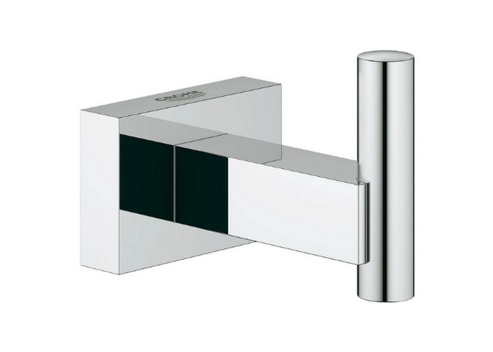 Крючок для банного халата Grohe Essentials Cube 40511001 изготовлен из латуни с хромированным покрытием по технологии Grohe StarLight, что предотвращает появление коррозии. Панель прямоугольная с нанесенным фирменным логотипом производителя. Держатель выполнен в виде цилиндра.