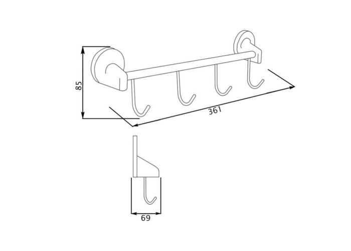 Тримач для рушників і халатів Lidz (CRM) 115.08.04 виконаний у вигляді стержня з чотирма фіксованими гачками. Він кріпиться на стіну на зручній висоті за допомогою монтажних елементів, які входять у комплект. Поверхня хромована, тому менш схильна до корозії і бруду. Під час прибирання досить протерти за допомогою мильного розчину і м‘якої серветки.