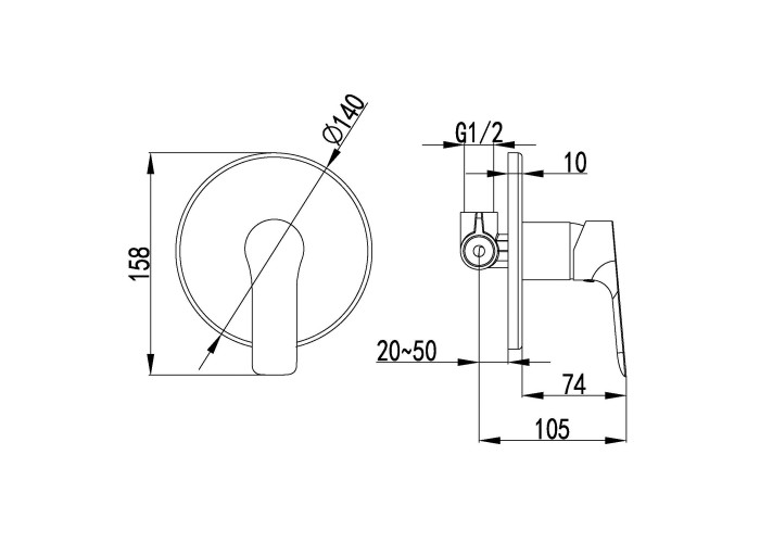 KUCERA смеситель скрытого монтажа для душа, однорычажный, хром, латунь. Модель установленного картриджа Sedal EN- 35 S/D AZ