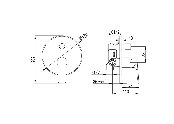 KUCERA смеситель скрытого монтажа для ванна/душ, однорычажный, латунь, хром.