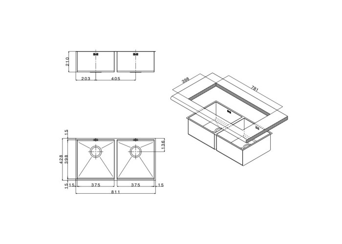 Кухонна мийка Apell Ferrara Zero FEQ3838USC виготовлена з нержавіючої сталі високої якості. Сталь складається з 18% хрому та 10% нікелю, що робить її дуже міцною. Згідно з цим, мийка прослужить довгі роки, збереже функціональність і зовнішній вигляд. На поверхні відсутні пори, тому вона не забруднюється, швидко миється, стійка до подряпин. Мийка виконана з двома матовими робочими чашами з переливом у кожній, монтується під стільницю. Відмінна якість та дизайн мийки.