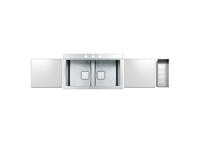 Кухонная мойка Apell Sinphonia PD862IKITW изготовлена из нержавеющей стали высокого качества. Сталь состоит из 18% хрома и 10% никеля, что делает ее очень прочной. Исходя из этого, мойка прослужит долгие годы, сохранит функциональность и внешний вид. На поверхности нет пор, поэтому она не загрязняется, быстро моется, устойчива к царапинам. Мойка выполнена с двумя рабочими чашами, двумя стеклянными крышками и коландером для промывания и сушки продуктов или столовых приборов.