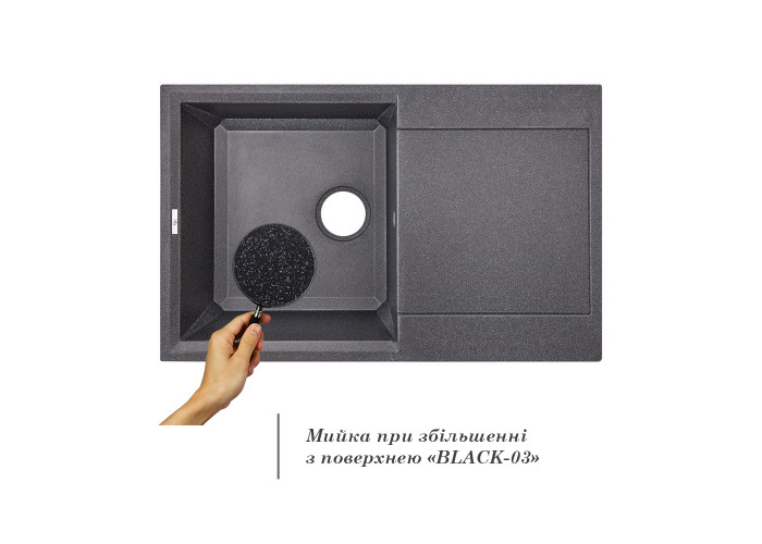Кухонная мойка GF (BLA-03) 790x495/230 изготовлена из высококачественного гранита, имеет черную матовую поверхность, поэтому будет хорошо смотреться со смесителем того же цвета. Отменное качество и дизайн мойки позволят удовлетворить самые высокие требования и создать уют в вашем доме! Форма мойки прямоугольная с острыми углами. Изделие выполнено с рабочей чашей с отверстием слив-перелив и вдавленным для стекания воды гладким крылом для сушки посуды или разморозки продуктов.