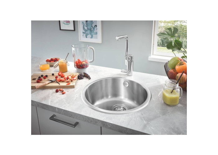 Кухонная мойка Grohe Sink 31720SD0 изготовлена из нержавеющей стали с хромированной износостойкой поверхностью, нанесенной по технологии GROHE StarLight®. Благодаря системе GROHE QuickFix установка мойки в столешнице не займет много времени и не потребует дополнительного оборудования. Мойка выполнена в виде чаши. Изоляция GROHE Whisper на нижней части мойки уменьшает шум.