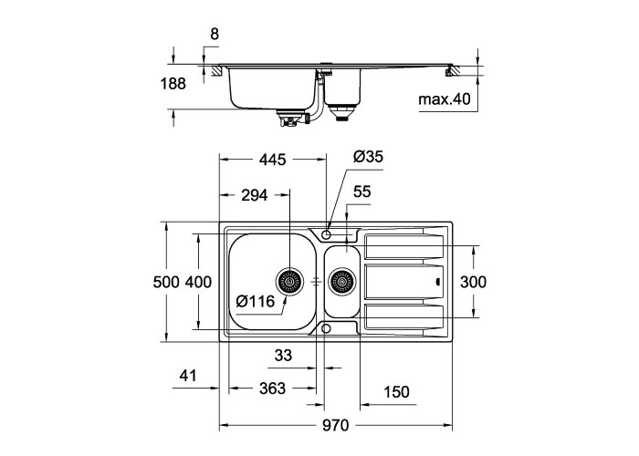 Кухонная мойка Grohe Sink 31567SD0 изготовлена из нержавеющей стали, что гарантирует ее надежность и привлекательность поверхности. Благодаря системе GROHE QuickFix установка мойки не займет много времени и не потребует дополнительного оборудования. Мойка выполнена с рабочей чашей с отверстием слив-перелив, дополнительной для разморозки продуктов, двумя отверстиями под смеситель и крылом для сушки посуды. Изоляция GROHE Whisper на нижней части мойки уменьшает шум.