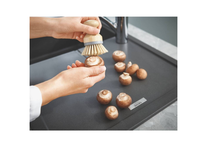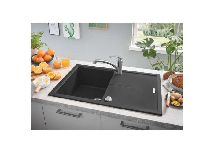 Кухонна мийка Grohe Sink 31639AP0 виготовлена з кварцового композиту, який складається з 80% кварцу та 20% акрилової смоли й затверджувача. Завдяки системі GROHE QuickFix установлення мийки не візьме багато часу та не потребує додаткового обладнання. Мийка виконана з робочою чашею, отвором для змішувача та крилом для сушіння посуду або розморожування продуктів. Ізоляція GROHE Whisper на нижній частині мийки зменшує шум, є автоматичний сміттєзбірник з дистанційним управлінням.