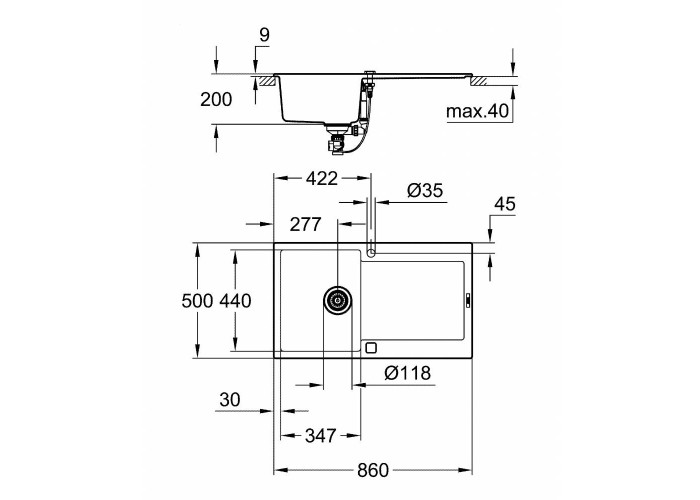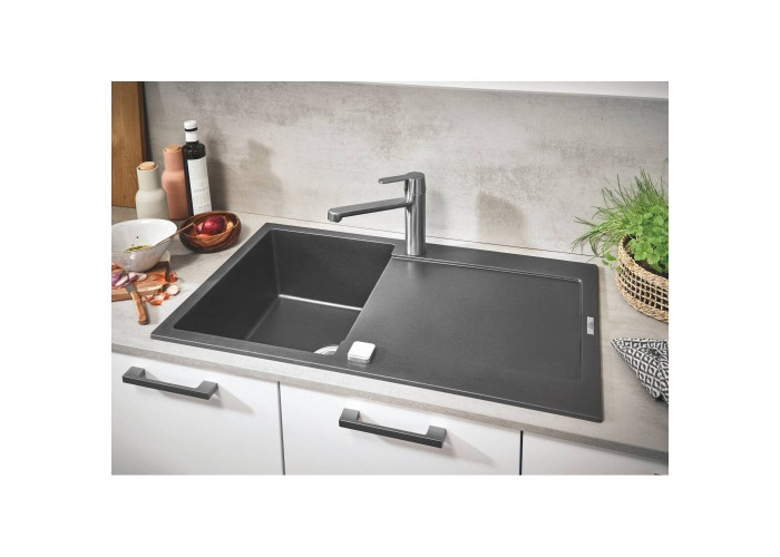 Кухонная мойка Grohe Sink 31644AT0 изготовлена из кварцевого композита, который состоит из 80% кварца и 20% акриловой смолы и отвердителя. Благодаря системе GROHE QuickFix установка мойки не займет много времени и не потребует дополнительного оборудования. Мойка выполнена с рабочей чашей, отверстием под смеситель и крылом для сушки посуды. Изоляция GROHE Whisper на нижней части мойки уменьшает шум, а автоматический мусоросборник с дистанционным управлением разрешает вытащить пробку.